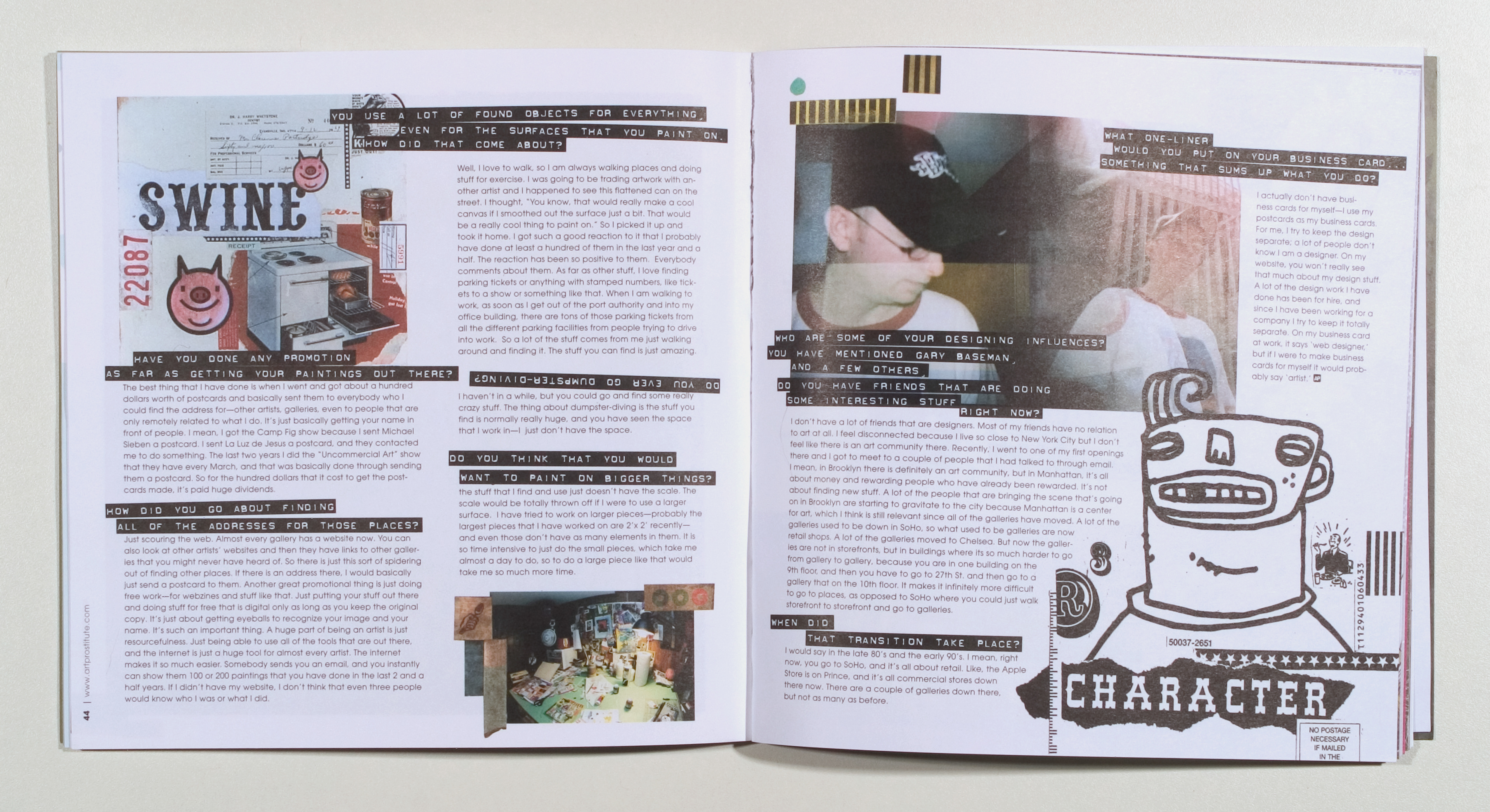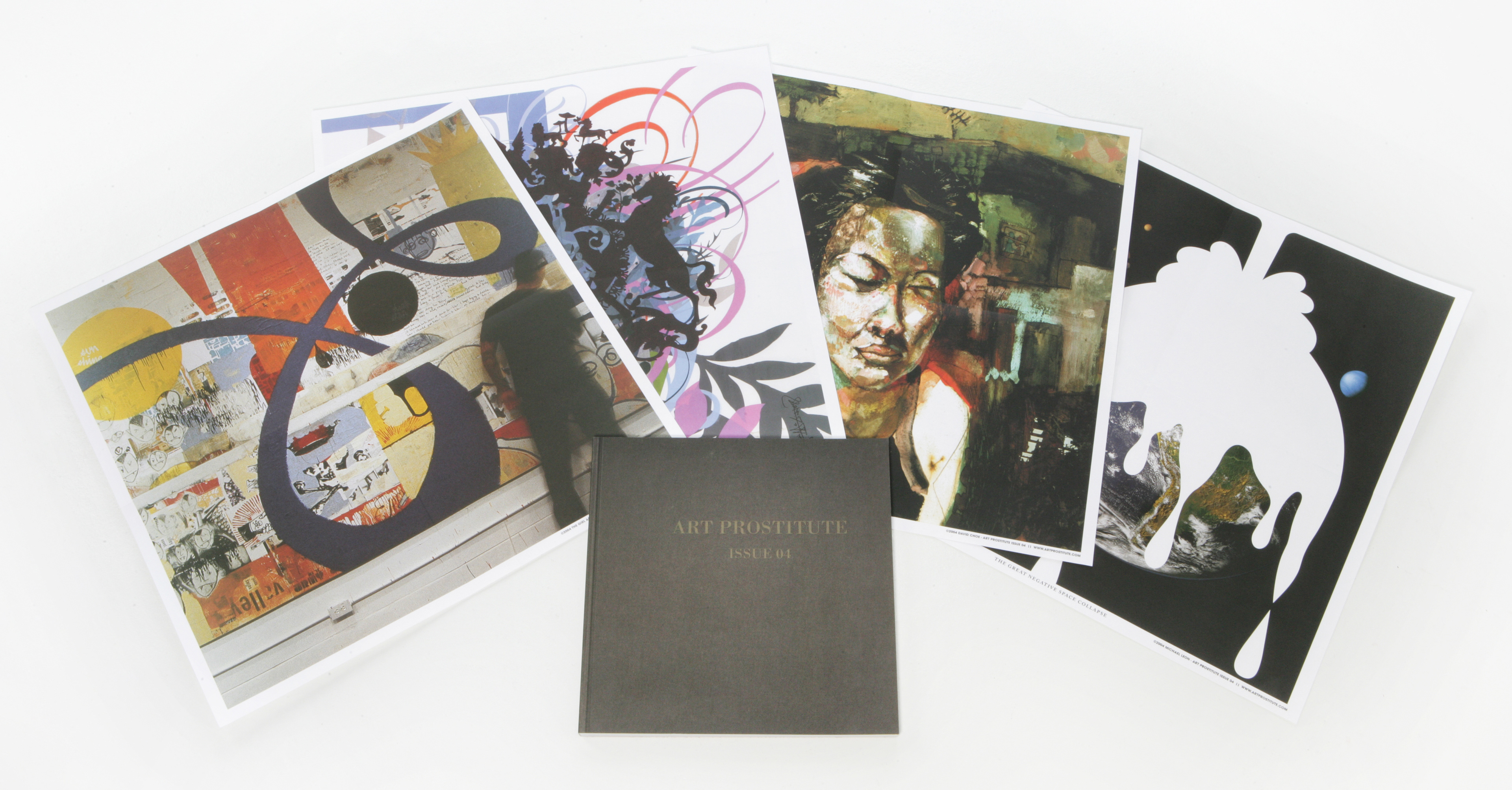 Soon after graduating university I created Art Prostitute, a quarterly art and design publication that featured interviews and artwork from highly-respected contemporary artists. The publication focused on uncovering the ways in which working artists had found a way to make a living through their art practice. It also encouraged its readers to collect art—with each issue featuring four collectible art posters from each of the featured artists.